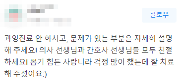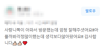 기분좋게 진료받으셨다니 저희도 기분이 좋네요^^ 감사드립니다 좋은하루되세요~!