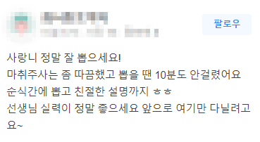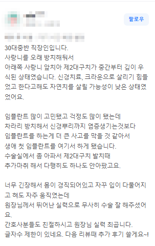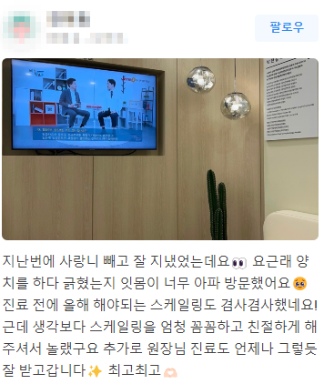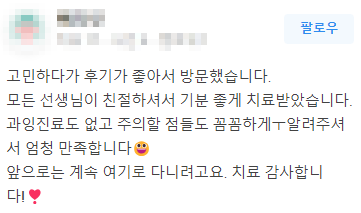 사랑니때문에 많이 불편하셨을텐데 이제 편히 식사하시면 좋겠습니다 : ) 좋은하루되세요 감사합니다~!